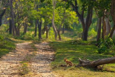 Sal trees dominate the Kanha landscape, forming towering green cathedrals that filter light in the most dramatic ways—ideal for playing with light and shadows in your compositions. These forests come alive in winter with mist layering their trunks, creating surreal and moody scenes.